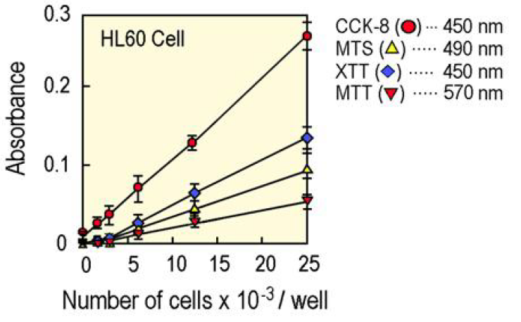 相较于其他的检测方法,CCK8法有更好的灵敏度。